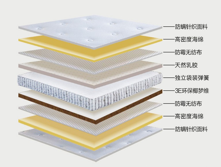 擁有富士安,健康快樂每一天!青島富士安家居有限公司是一家專業生產床墊的企業,公司一直以市場為主導,質量為生命。不斷更新,引進業內先進的高科技工藝、技術和設備。結合自身的雄厚實力,大膽創新,在床墊的研發、工藝、款式等方面不斷突破,率先倡導床墊綠色環保新理念,采用3E環保椰棕,及當今適宜睡眠健康的天然椰子殼外層纖維作為主原料,制作過程無膠水、無甲醛、除潮吸濕、抑菌透氣,冬暖夏涼等。彈簧分為布袋彈簧與精鋼整網彈簧,彈性好、承托性較佳、透氣性較強、防銹耐用等優點。天然乳膠其特點是不懸空、不塌陷、柔軟舒適,全方位支撐充分貼合身形,能有效緩解身體各部位壓力...